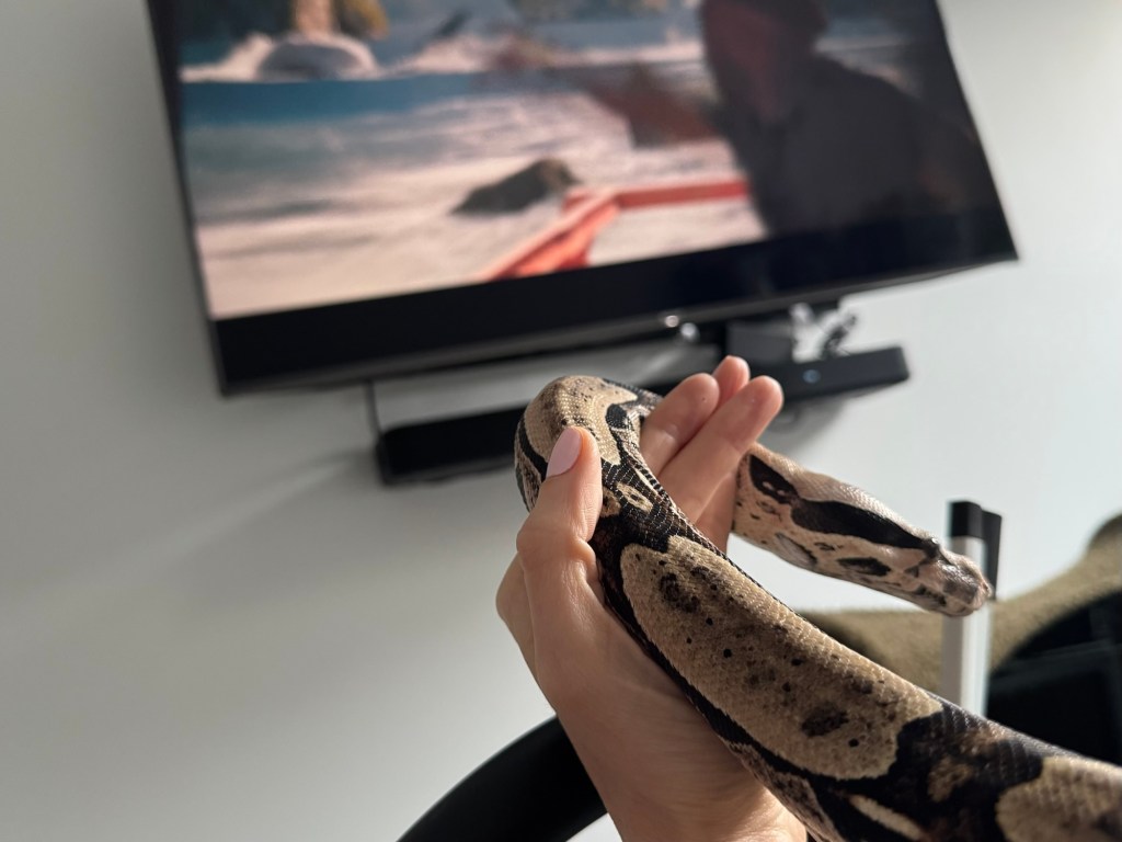 My brother and sister-in-law have been super helpful caring for my pets and me. Ryan fed Kaa for the first time last night, and I think he enjoyed that! 🐍 Aubrie gave Bella a nice long brush tonight, and I know she loved that! 🐶 Rex seems quite content snuggling with me in the bed amongst all my various pillows.