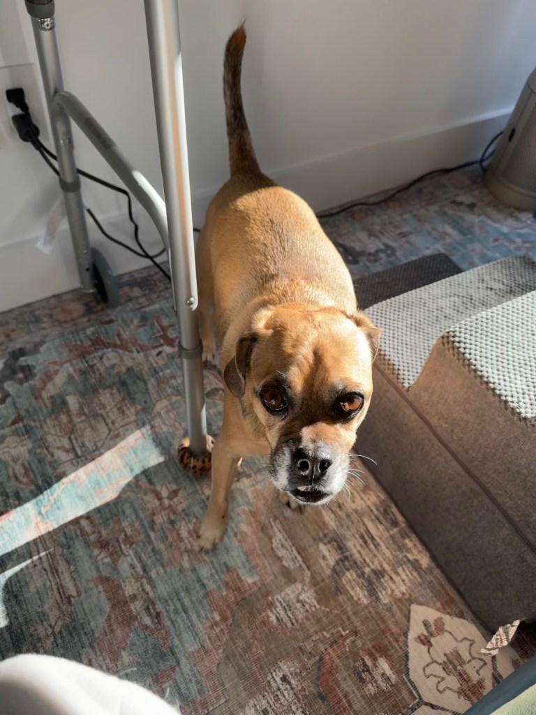 I’m a week out from surgery, and recovering strongly! Walking with the walker gets easier every day. My legs still feel like they are not totally awake, and I have cramping in my calves and thighs that is a challenge to control. Hopefully that will go away as the nerves heal. I’m no longer feeling tightness in my hip flexors or the pinched nerve pain in my low back. I’m taking medication to manage the pain, as well as blood thinners to break up the clot in my lung. This Monday was the first day my pain didn’t hit 10, and I spent most of the day at 3. Today my pain got down to 1!
