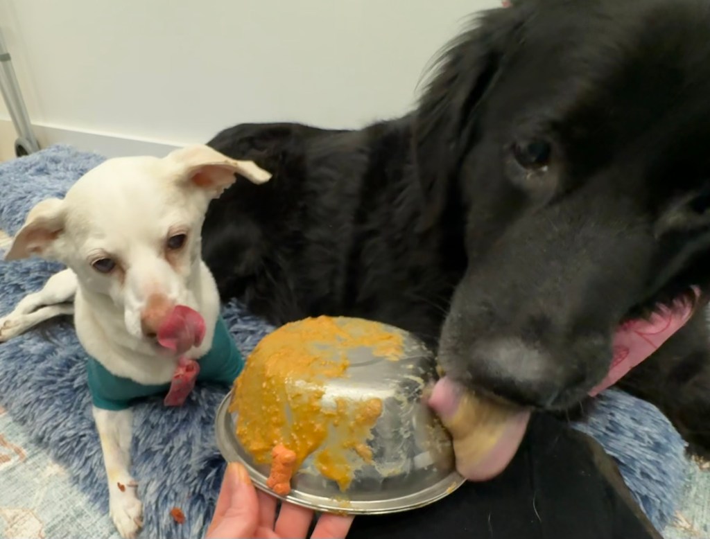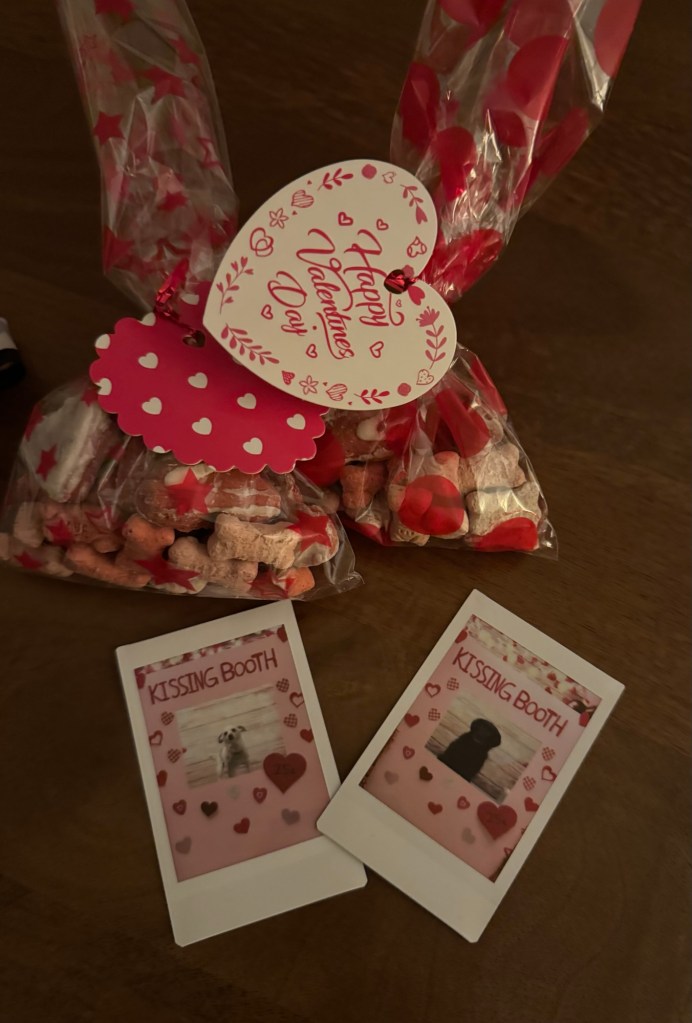 I’m now walking the dogs by myself (one at a time), and I can see all the work the trainer did with them paying off. Bella and Rex celebrated Valentine’s Day at daycare yesterday and with me today. I couldn’t ask for cuter valentines. 💘