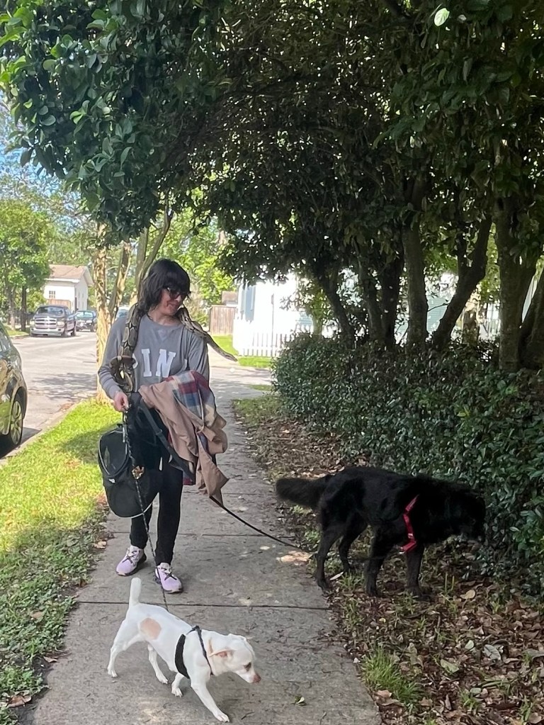 After I adopted Bob, I changed his name to Kaa because I just did not think Bob was special enough for such a beautiful snake. Kaa and I have been through a lot. He was in the car when I had my accident—during my move from NOLA to NYC, the U-haul trailer I was towing all my belongings in fishtailed and I flipped over three times. Luckily my pets were uninjured, and my injuries were minor.