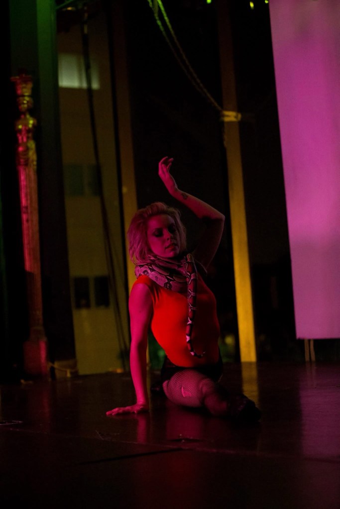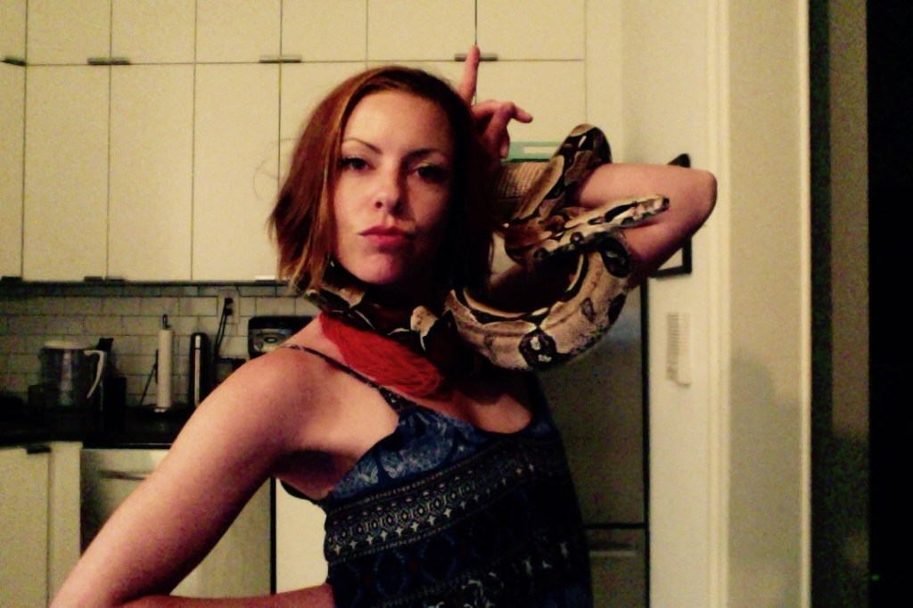 Kaa came into my life in 2013. I was producing a show through my dance company, Broken Mirror Productions, based on Dante’s Inferno (“Seven Deadly Sins.”) I wanted to dance with a snake for the opening and closing numbers. When I booked Eiffel as the venue for the show, one of the owners told me he had a snake I could dance with. His name was Bob, and he was a Colombian red-tail boa constrictor. So I went over and met him.