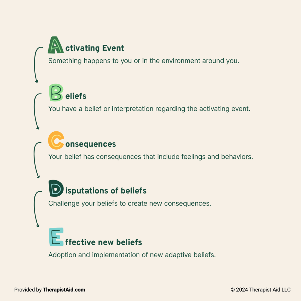 It’s helpful to remember the cognitive behavioral model as the ABCDE model.